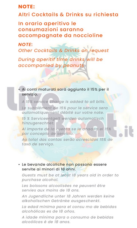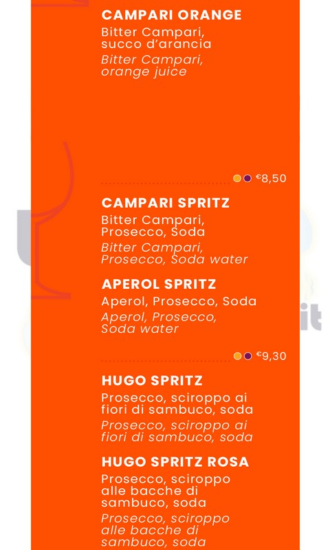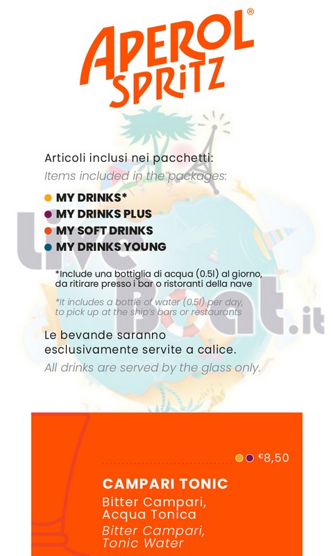 Il listino dell’APEROL SPRITZ BAR presente su alcune navi della flotta. Aggiornato a Ottobre 2025.