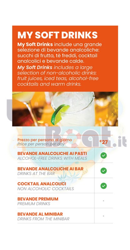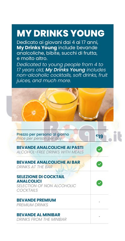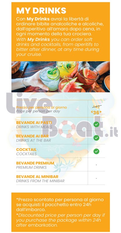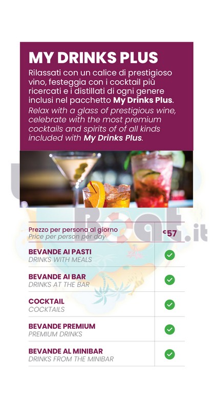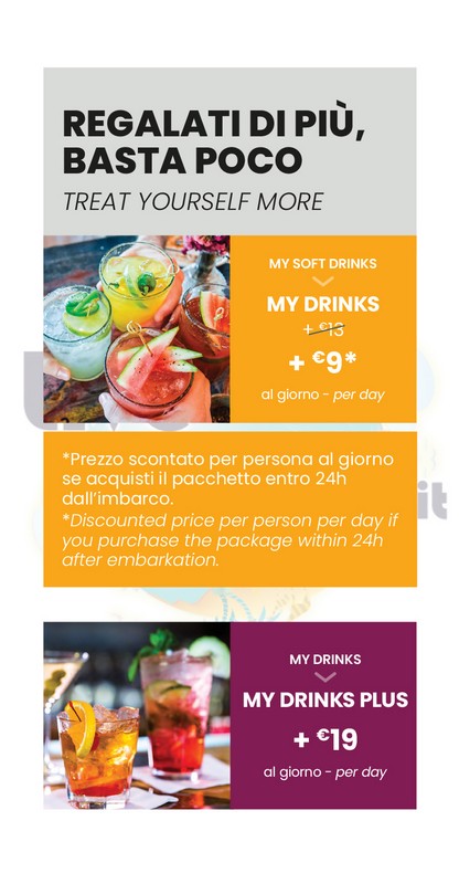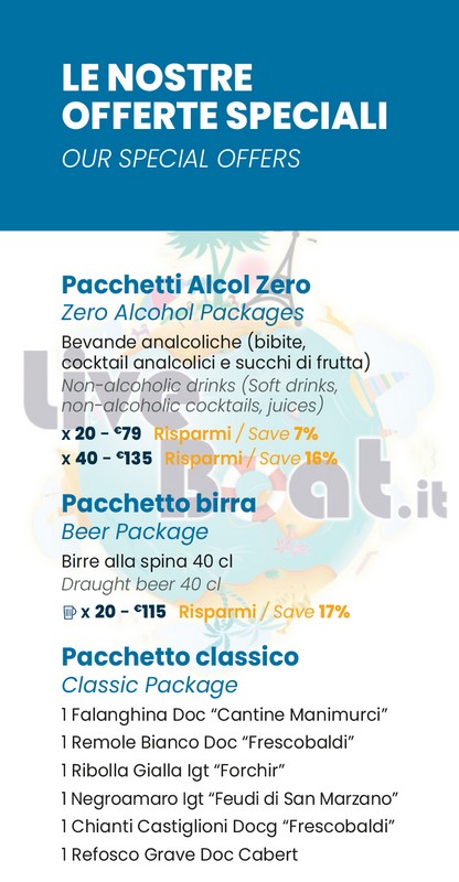 Sono disponibili anche pacchetti di singole bevande: Pacchetto Alcol Zero, Pacchetto birra, Pacchetto classico.
