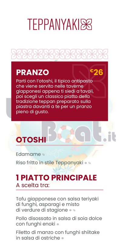 Il Ristorante TEPPANYAKI a bordo di alcune navi della Flotta Costa Crociere. Aggiornato a Ottobre 2025