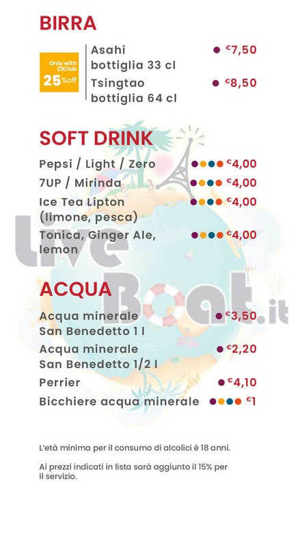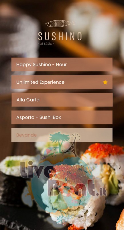Il SUSHINO – AT COSTA – a bordo di alcune navi della Flotta Costa Crociere. Aggiornato a Ottobre 2025