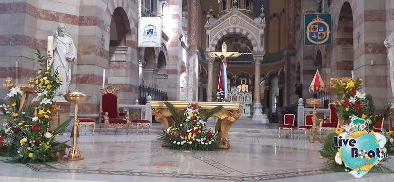 Rosalba è scesa in autonomia e scrive: Buongiorno abbiamo preso Uber, siamo andati al quartiere arabo, visitato L’Empereur il negozio di articoli domestici più antico di Marsiglia, dopodiché abbiamo preso l’autobus 60 che al costo di una normale corsa cittadina ci ha portati sulla collina a Notre Dame de la Garde, la magnifica vista in una splendida giornata come oggi è stata impagabile.