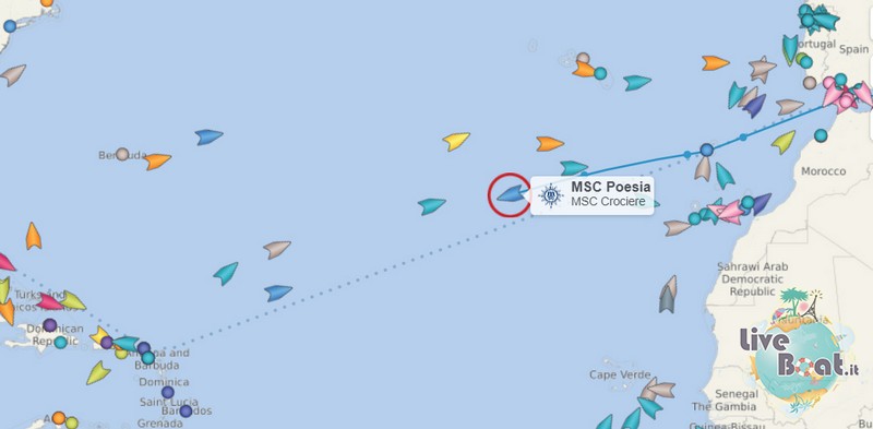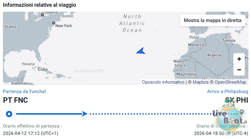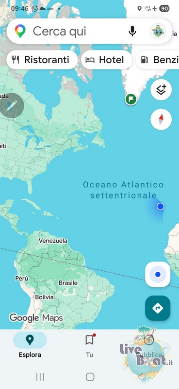 La posizione della nave a metà mattinata, purtroppo è nuvoloso e freschino