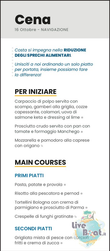 Il menù e la cena