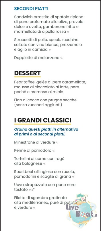 Il menù e le portate del pranzo