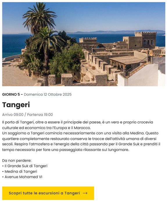 Alla pag. 13 tutte le escursioni proposte da Costa Crociere.
