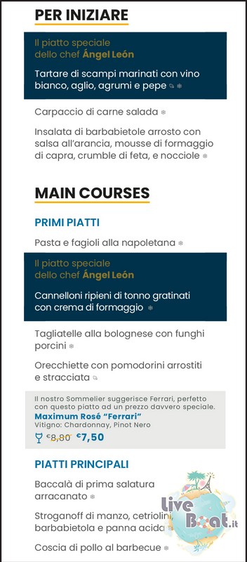 Il menù e le portate della cena