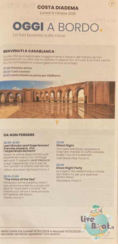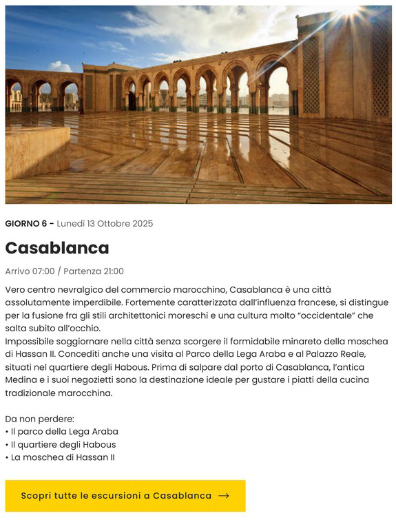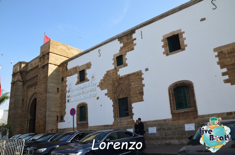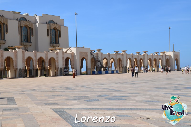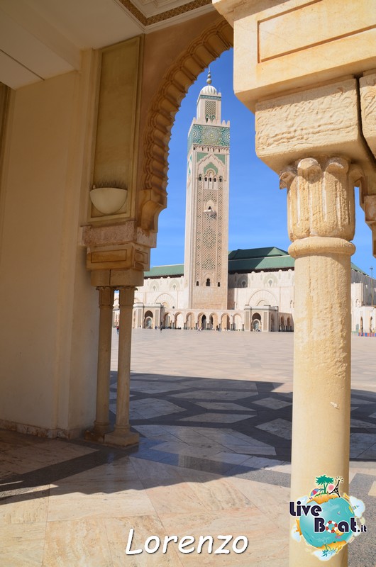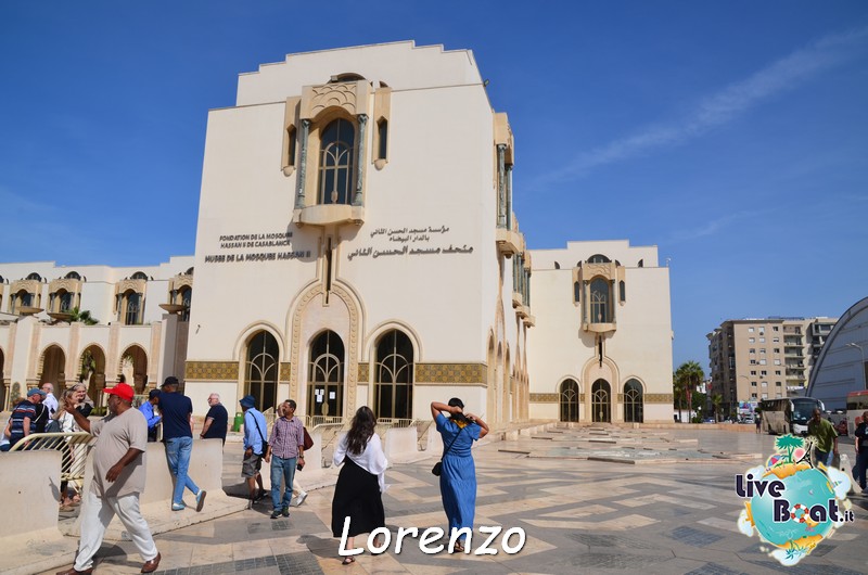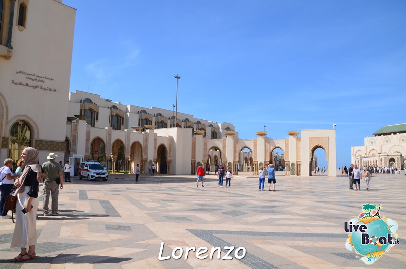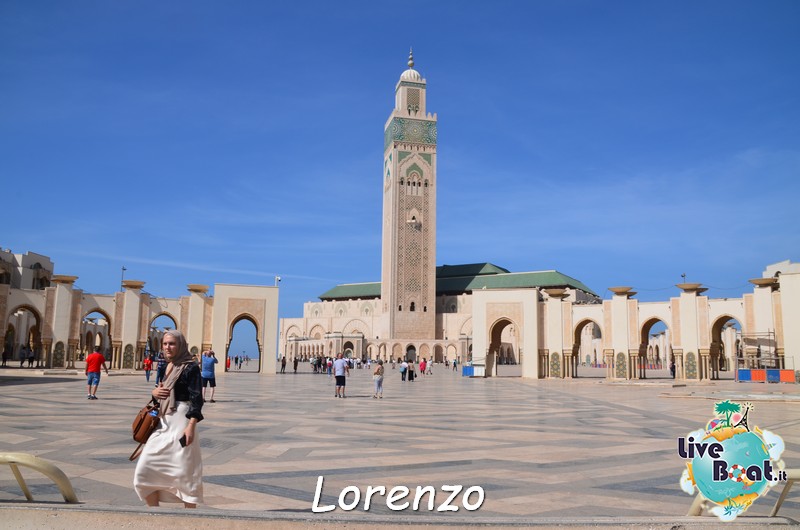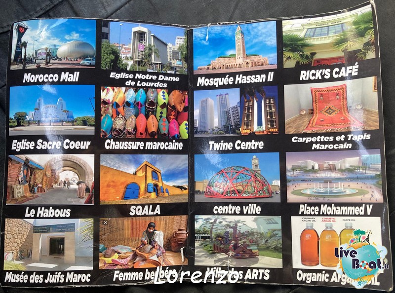 Dopo il pranzo scendo, per uscire dal porto bisogna prendere la navetta gratuita. Appena fuori ci sono parecchi taxi che offrono tour personalizzati e a buon prezzo. Ne prendo uno che ci farà fare un giro di 3 ore con alcune soste nei luoghi principali: la grande Moschea Hassan II, il faro, il Morocco Mall, la piazza Mohamed V, la piccola Medina e la grande Medina.