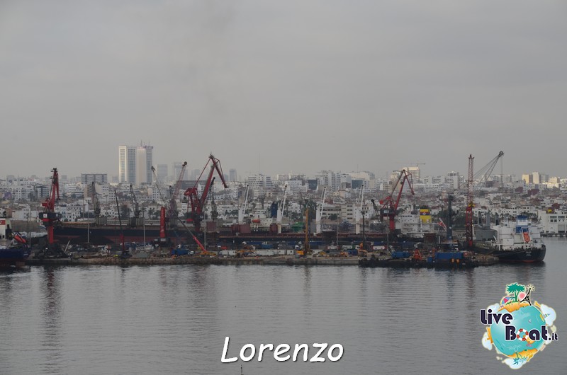 Si arriva a Casablanca con il cielo coperto, un panoramica della città dalla nave