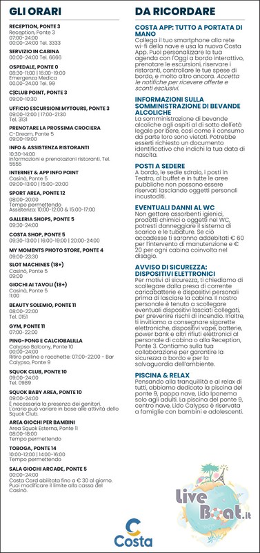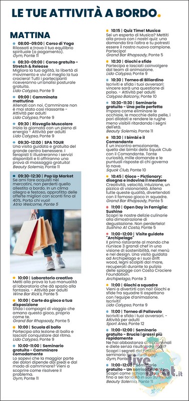 Alla pag. 14 tutte le escursioni proposte da Costa Crociere.