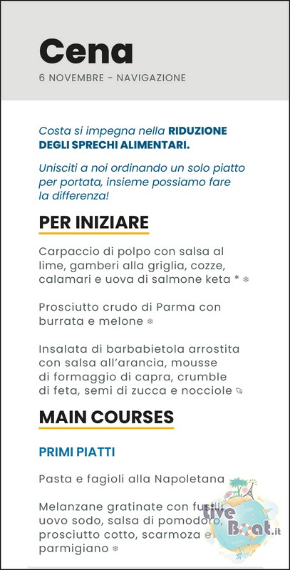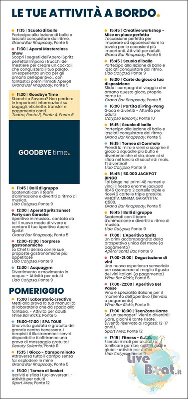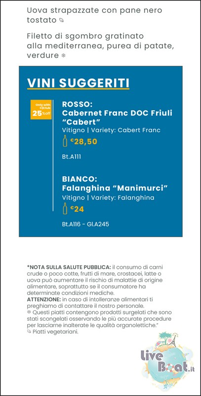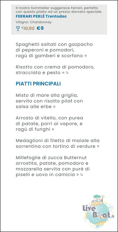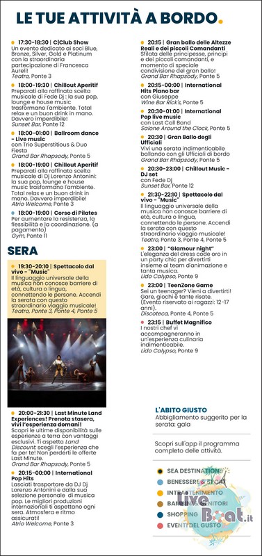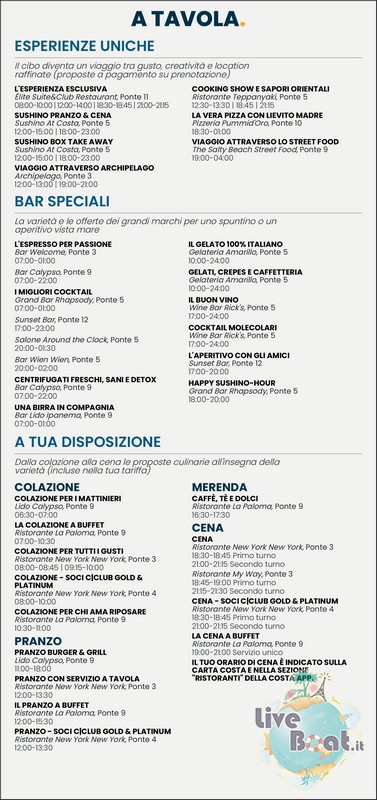 Oggi giornata di navigazione. Svegliati con calma e fatta una colazione leggera. Per evitare la bolgia del buffet abbiamo deciso di prenotare a pranzo al Sushino (il menù e consultabile qui). Tante attività in giro. Alle 17:30 abbiamo partecipato all’evento dedicato al C|Club.