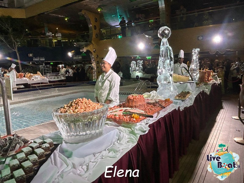 Ottima cena e alle 23:15 gran buffet al ponte 9 accanto alla piscina.