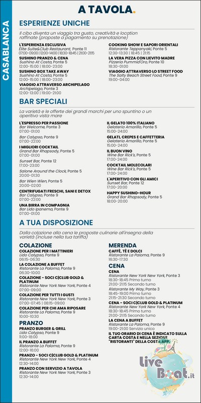 Alla pag. 14 tutte le escursioni proposte da Costa Crociere.