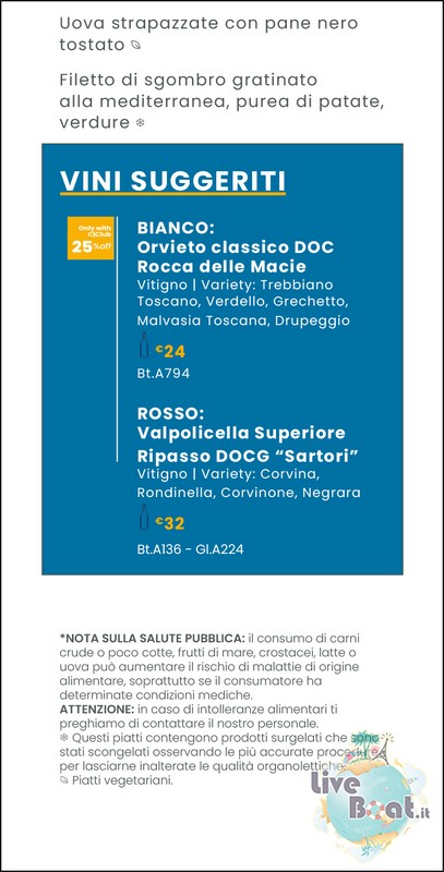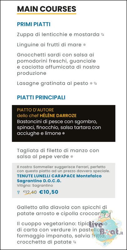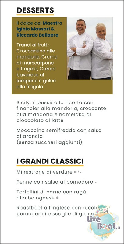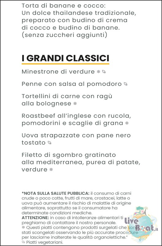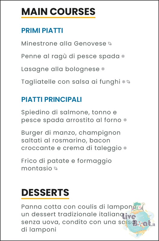 Rientrati in nave siamo andati a pranzo al ristorante New York. Il menù e le portate del pranzo.