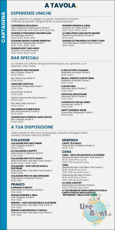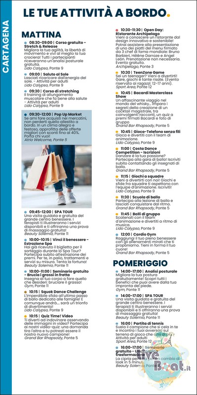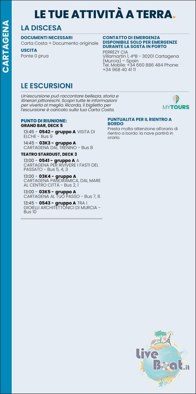 Alla pag. 14 tutte le escursioni proposte da Costa Crociere.