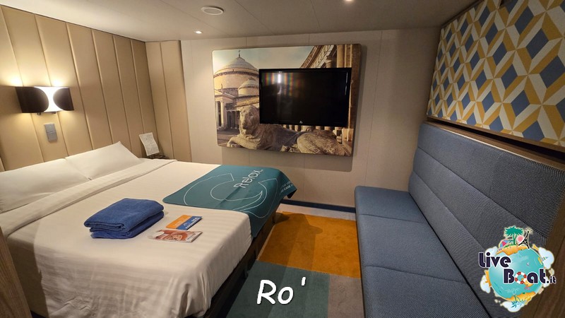 Cabina quadrupla interna di Costa Smeralda e Costa Toscana con il divano-letto e il 4 letto sopra, più grandi rispetto alle altre navi.