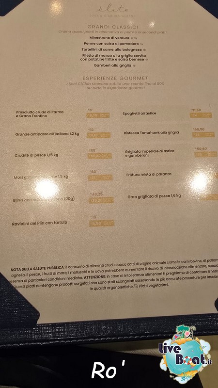 Il Ristorante Bellavista, per suite o Platinum quando vi sono tavoli disponibili.
