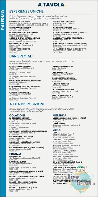 Alla pag. 14 tutte le escursioni proposte da Costa Crociere