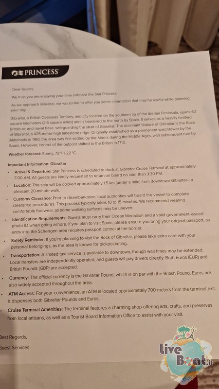Buongiorno da Gibilterra!! Come già preventivato all’acquisto di questa crociera. Questa mattina a Gibilterra il cielo era coperto, sono cadute alcune gocce di pioggia e la temperatura era freschina. Ci siamo fatte una bella passeggiata nella cittadina, e siamo rientrate in nave. Sul mezzogiorno, quando la nave è in porto, i ristoranti di bordo rimangono tutti chiusi tranne il self service e la pizzeria.
