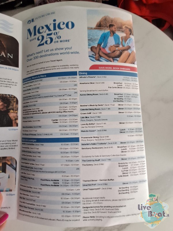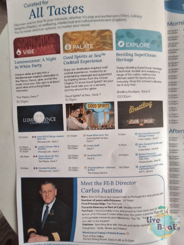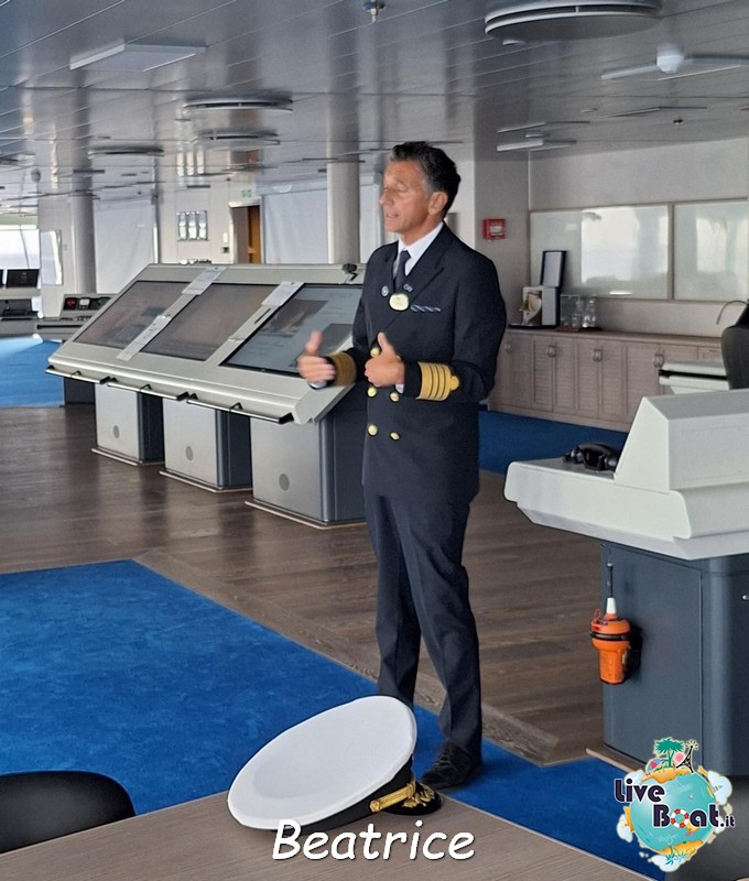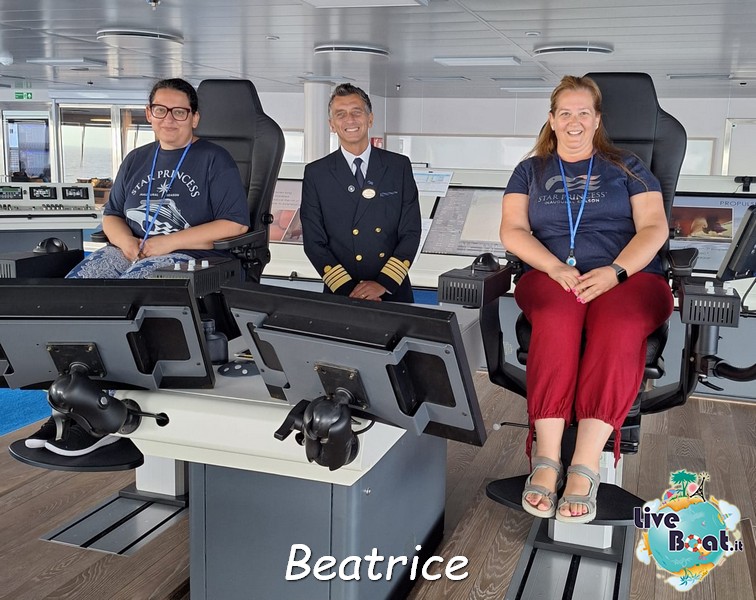 Buongiorno a tutti dalla splendente Star Princess! Oggi giornata di navigazione. Il mare è poco mosso e il cielo è nuvoloso. La navigazione è tranquilla. Tutti noi abbiamo un sogno… il mio si è realizzato questa mattina. Siamo state invitate dal comandante sul ponte di comando. Per me una grande emozione. In più di 40 crociere non ero mai stata sul ponte di comando, quindi potete immaginare la mia felicità! Ora aperitivo e poi si va a pranzo…